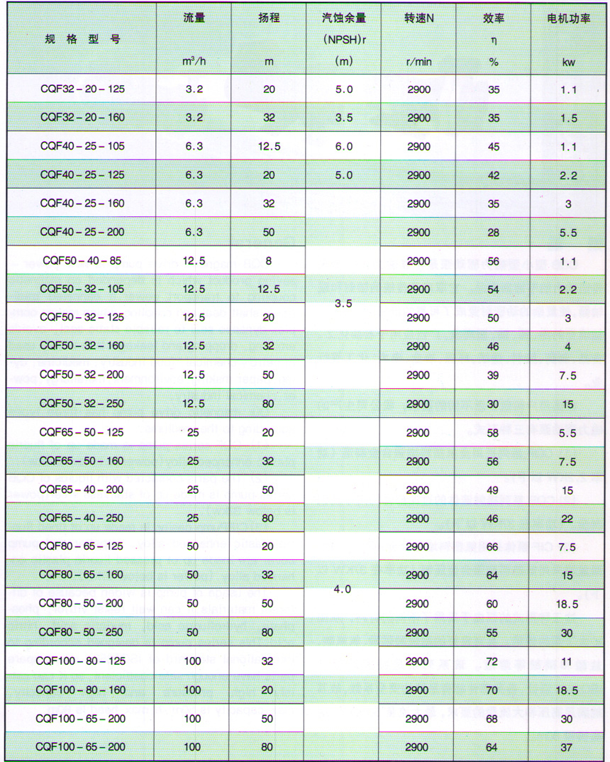 這三種形式的泵由于采用了不同的材料,從而擴大了泵的使用。具有良好的耐硫酸磷酸、氫氟酸、鹽酸和硝酸等溶液。該系列泵是按國際標(biāo)準ISO2858設(shè)計,各另部件都有足夠的安全系數(shù),故其能滿足高壓和大流量的要求,最大流量50mi/h,最高揚程80m。